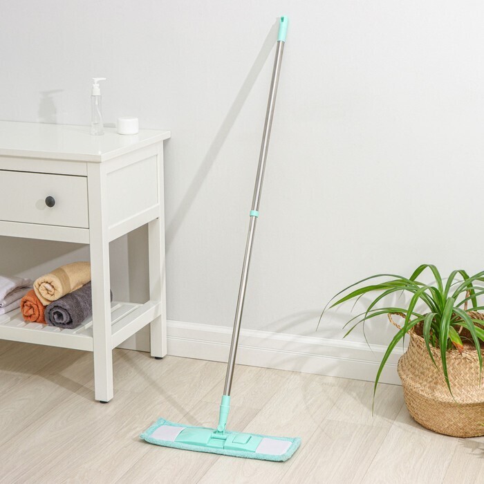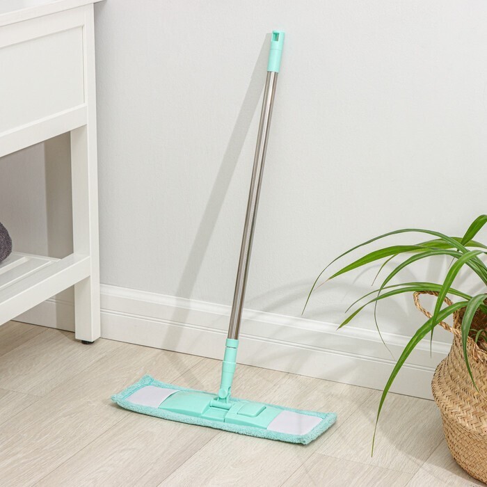 Швабра для мытья пола плоская Доляна, насадка из микрофибры 40×10 см, телескопическая стальная ручка 68-121 см, цвет МИКС