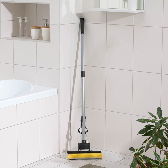 Швабра для мытья пола PVA с роликовым отжимом Доляна 120 см, телескопическая ручка 70-105 см, насадка 27×6 см, цвет чёрный