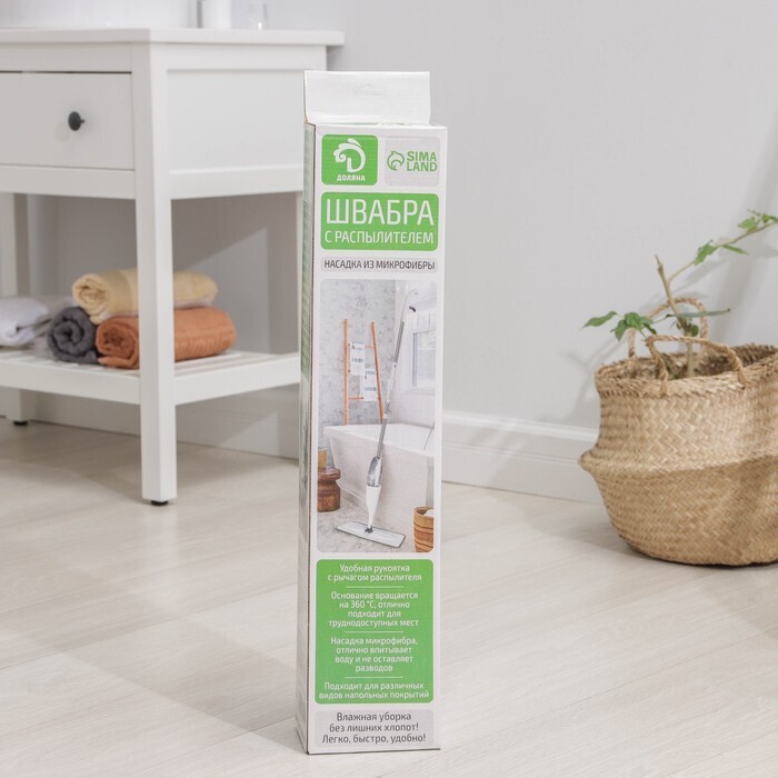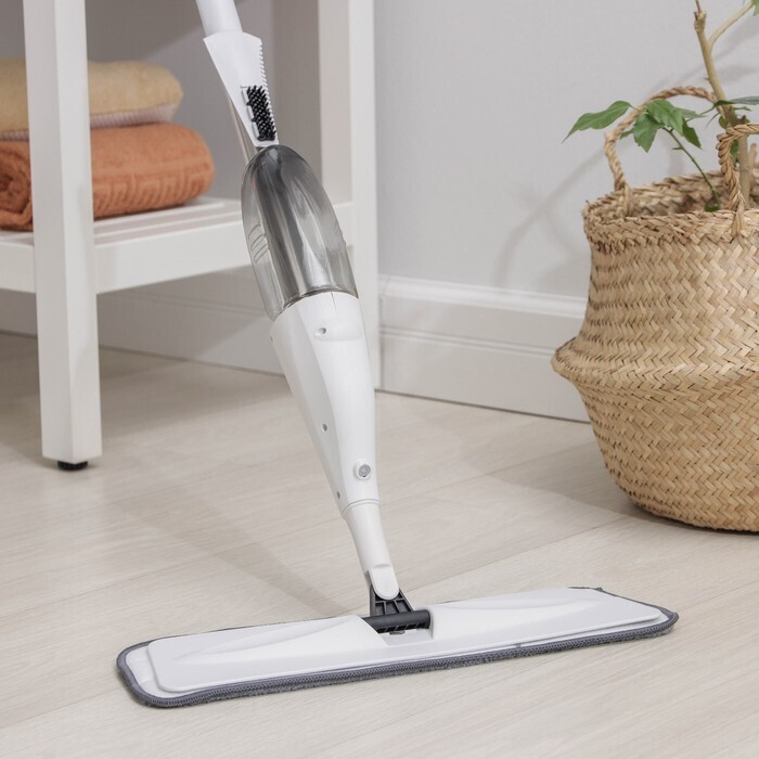 Швабра для мытья пола с распылителем Доляна, насадка из микрофибры 40×13 см, стальной черенок 125 см