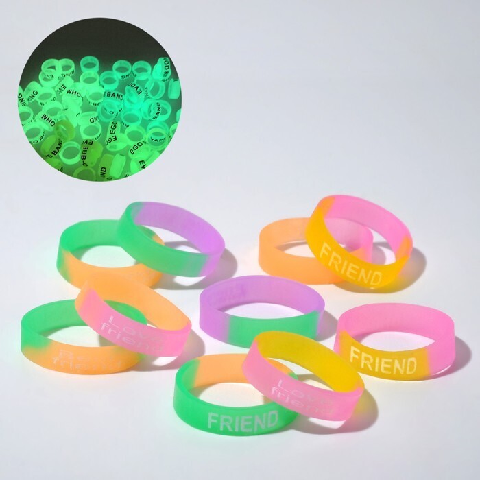 Силиконовое кольцо "Светоотражающее", набор 10 шт, цвет МИКС
