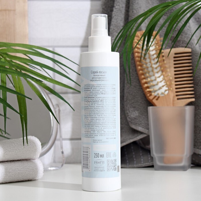 Лосьон-спрей создан на основе новейшей теплоактивной формулы, что позволяет сделать горячую укладку безопасной для волос. Активные компоненты (провитамин В5 и кератин) создают долговременную защиту волос от вредного воздействия солнца и горячего воздуха фена, обеспечивают эффект кондиционирования, оказывают длительное увлажняющее действие, предотвращают хрупкость волос. Спрей-лосьон быстро сохнет, не делая руки и волосы липкими.