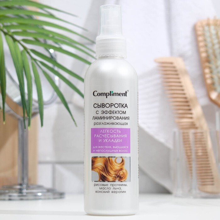 Сыворотка предназначена для жестких, вьющихся и непослушных волос. Рисовые протеины насыщают волосы полезными микроэлементами, увлажняют волосы, придают им эластичность, обладают глубоким питательным действием и предотвращают образование секущихся кончиков. Активные молекулы протеина обладают антистатическим эффектом, предотвращают спутывание волос, облегчая расчесывание и укладку даже на жестких и непослушных волосах. Масло льна образует защитную пленку, оберегающую волосы от воздействия ветра и перепадов температур, снижает повреждения при термоукладке и завивке. Благодаря его действию волосы cтановятся гладкими и приобретают зеркальный блеск. Конский кератин укрепляет и восстанавливает внутреннюю структуру волос, разглаживает их, придает эластичность и упругость.