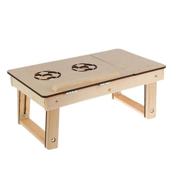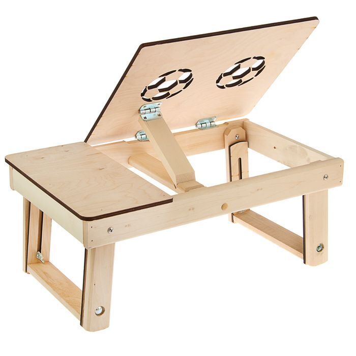 Столик-трансформер подходит для работы с ноутбуком, планшетом, а также для завтрака в постели. Предмет изготовлен из натурального дерева, имеет специальные отверстия, которые предназначены для вентиляции и предотвращения перегрева электронного устройства.