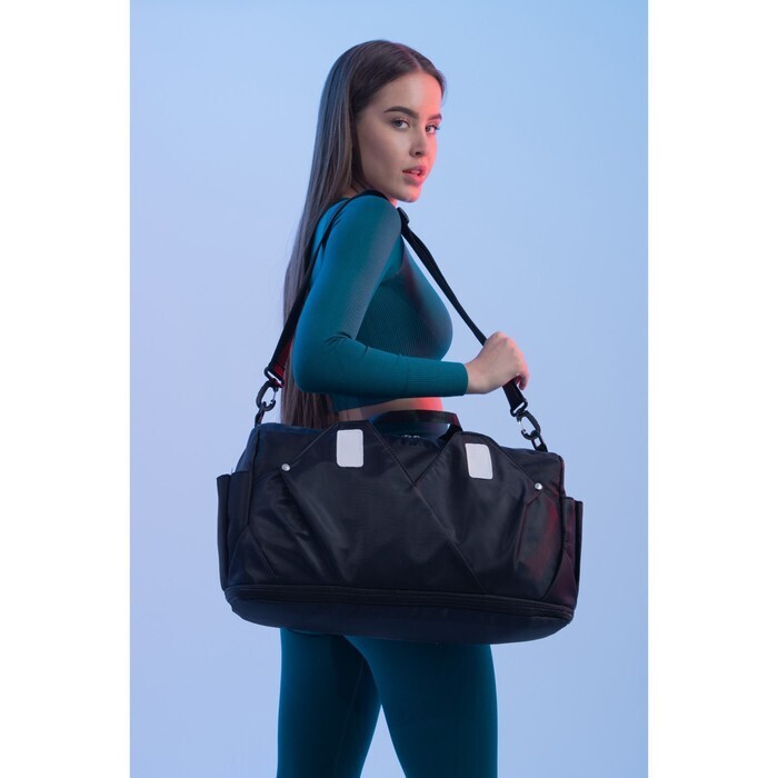 Сумка спортивная на молнии с увеличением, 4 наружных кармана, цвет чёрный