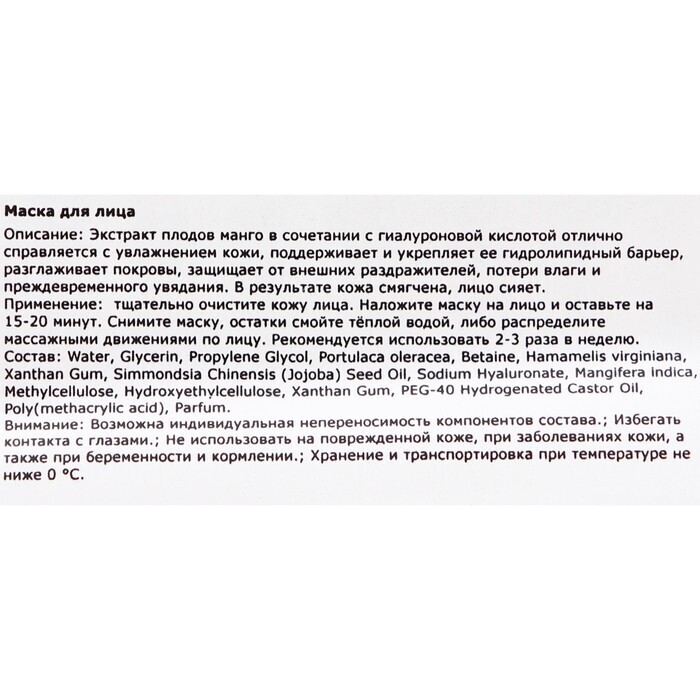Экстракт плодов манго в сочетании с гиалуроновой кислотой отлично справляется с увлажнением кожи, поддерживает и укрепляет её гидролипидный барьер, разглаживает покровы, защищает от внешних раздражителей, потери влаги и преждевременного увядания. В результате кожа смягчена, лицо сияет.