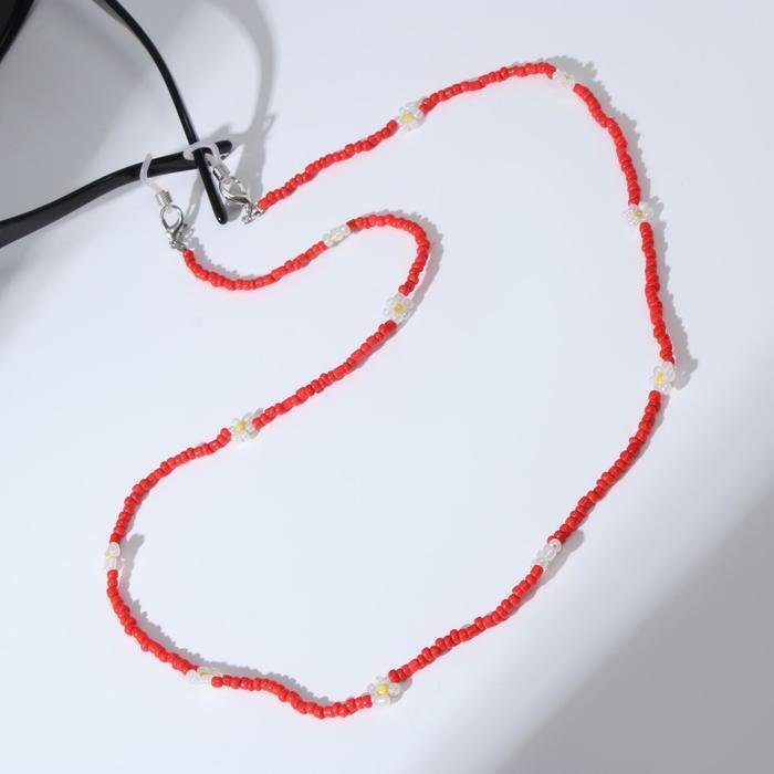 Цепочка для очков "Бисер" ромашка, цвет красный, 70 см