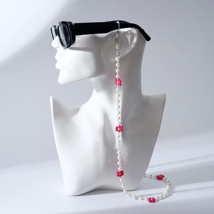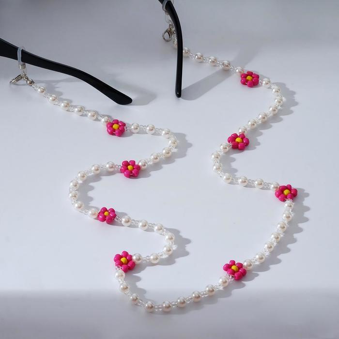 Цепочка для очков "Цветочки" жемчужинки, цвет розово-жёлтый, 70 см