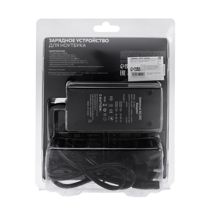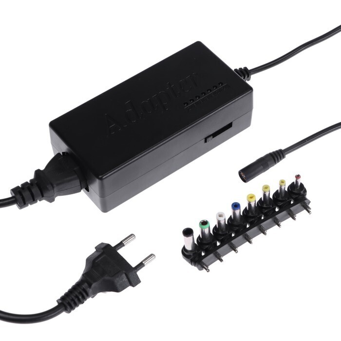 Универсальное зарядное устройство предназначено для обеспечения питанием аккумулятора ноутбука. В комплект входит 8 переходников разного диаметра и длины, поэтому прибор подойдет к большинству современных компьютеров.