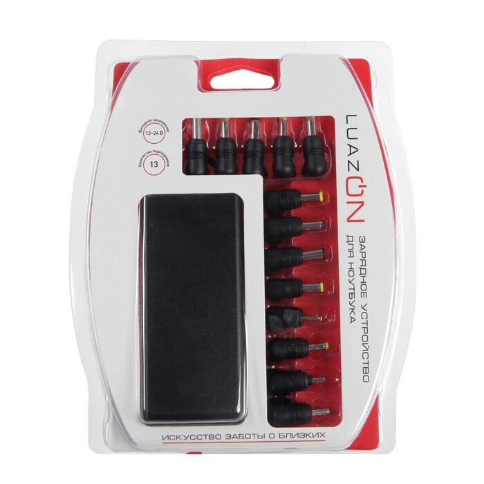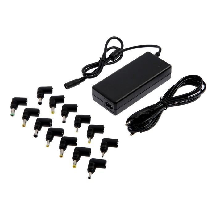 Универсальное зарядное устройство предназначено для обеспечения питанием аккумулятора ноутбука. В комплект входит 13 переходников разного диаметра и длины, поэтому прибор подойдет к большинству современных компьютеров.