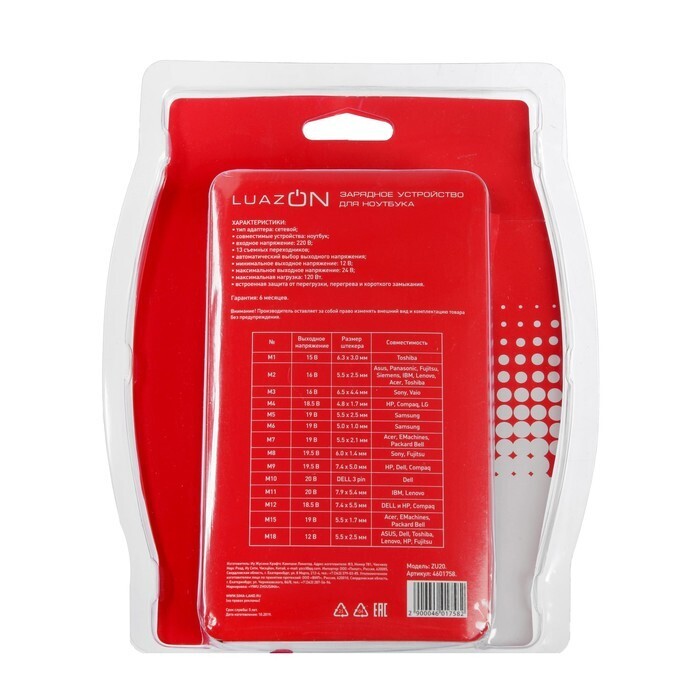 | M2 | 16 В | 5.5 х 2.5 мм | Asus, Panasonic, Fujitsu, Siemens, IBM, Lenovo, Acer, Toshiba |