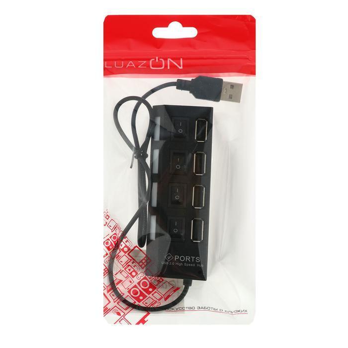 USB-разветвитель LuazON, 4 порта с индивидуальными выключателями, черный