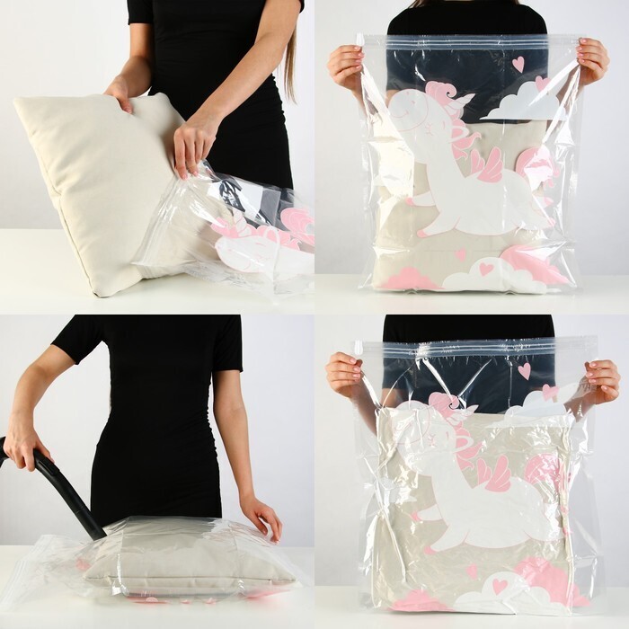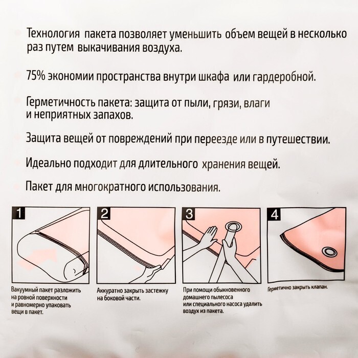 Объём хранимых вещей уменьшается в 4 раза! Вы значительно экономите драгоценное пространство, а также время на упаковку.