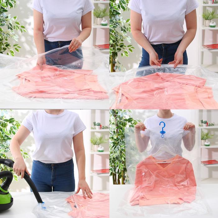 Вакуумный пакет для хранения вещей с крючком, 60×90 см, прозрачный
