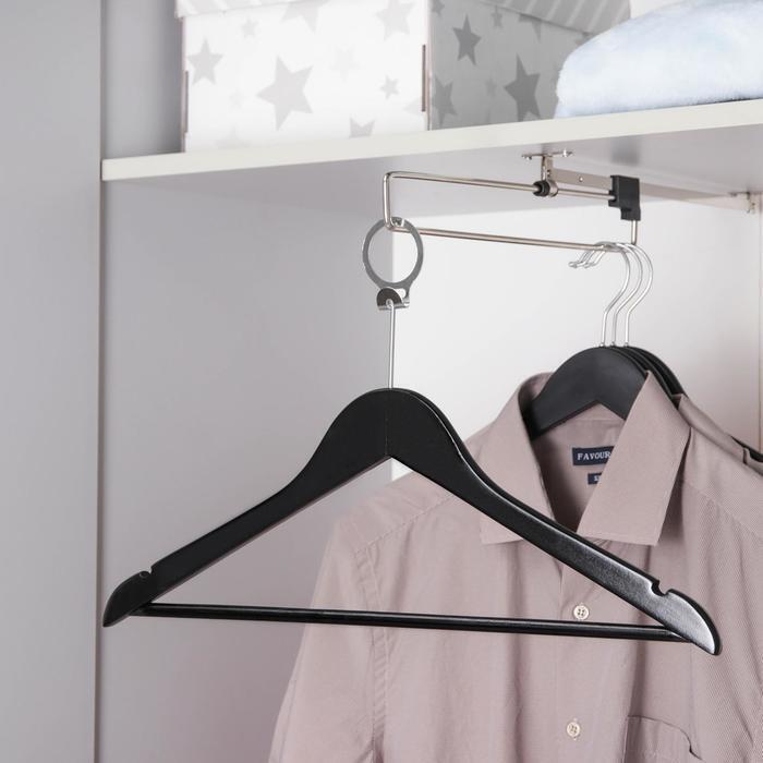 Вешалка – это компактное приспособление, которое позволит вам разместить в гардеробе классические штаны из лёгких или плотных материалов, блузки, рубашки, кофты и другие вещи. Изделие практичной формы занимает мало места, что позволяет экономить пространство в шкафу. Эргономичная форма поможет надёжно зафиксировать одежду и предотвратить её падение.