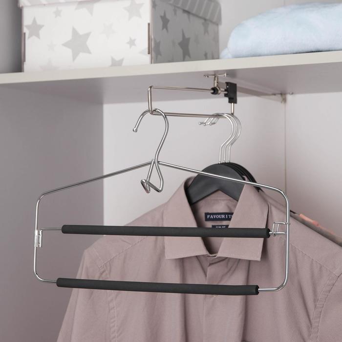 Вешалка для одежды антискользящая 2-х уровневая SAVANNA, 37×22 см, металл / полиуретан, цвет чёрный