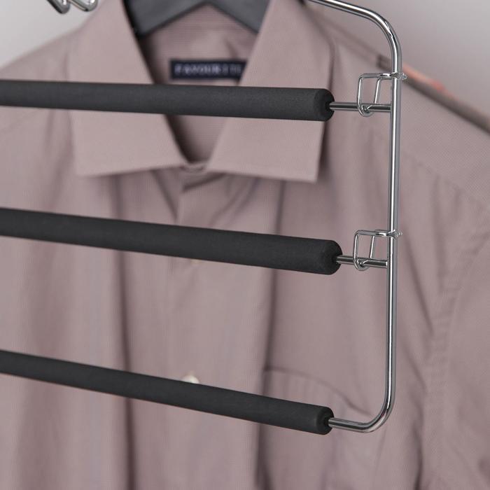 Вешалка для одежды антискользящая 3-х уровневая SAVANNA, 37×31 см, металл / полиуретан, цвет чёрный