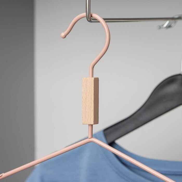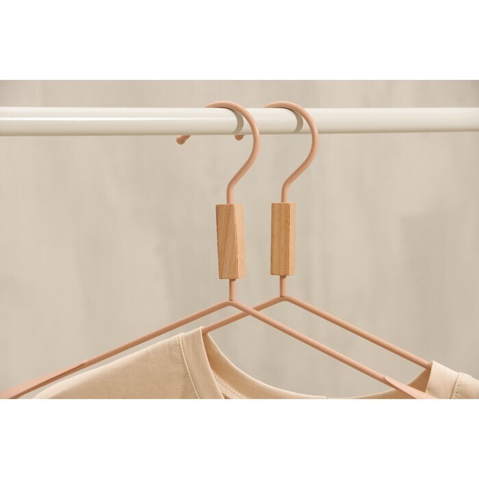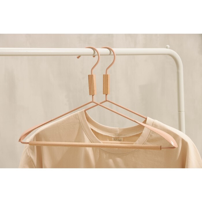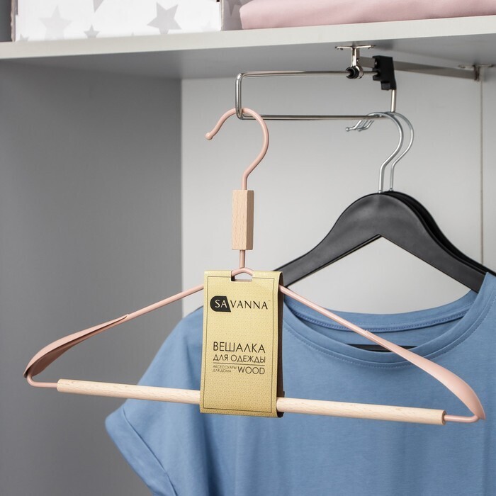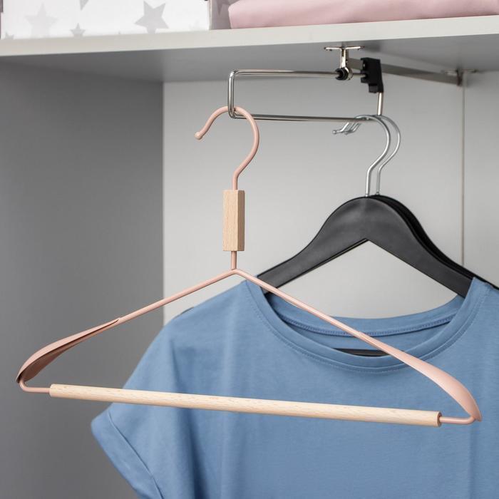 Вешалка для одежды с усиленными плечиками SAVANNA Wood, 42×22×3,2 см, цвет розовый