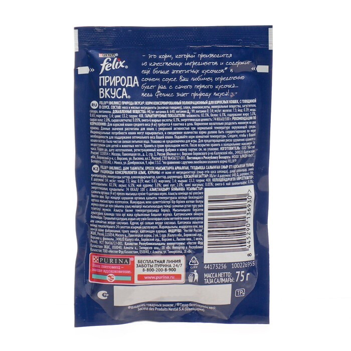 Эксперты Purina, разрабатывая влажные корма для домашних питомцев, создали насыщенный корм для взрослых кошек Felix «Природа вкуса» с аппетитными кусочками в сочном соусе. Полнорационный влажный корм обеспечит Вашего любимца всеми необходимыми питательным веществами.