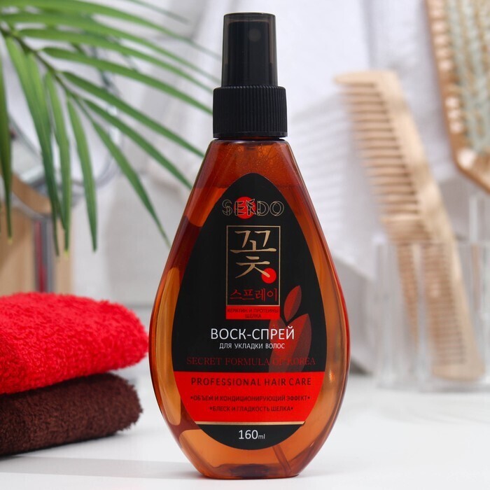 Воск-спрей отлично справляется с непослушными и пушистыми волосами, не склеивая их. Кератин в составе делает волосы гладкими и блестящими, пшеничные протеины придают шелковистость и сияние.