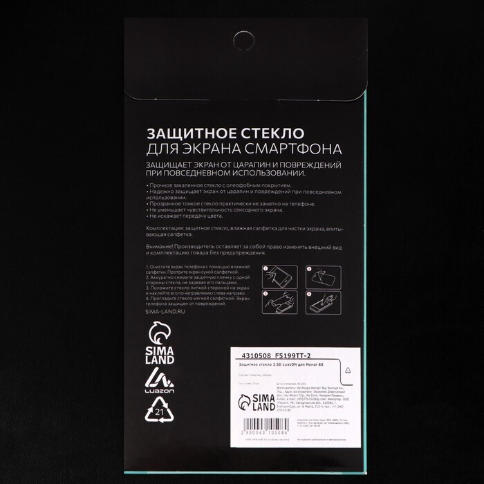 Защитное стекло 2.5D LuazON для Honor 8X, полный клей