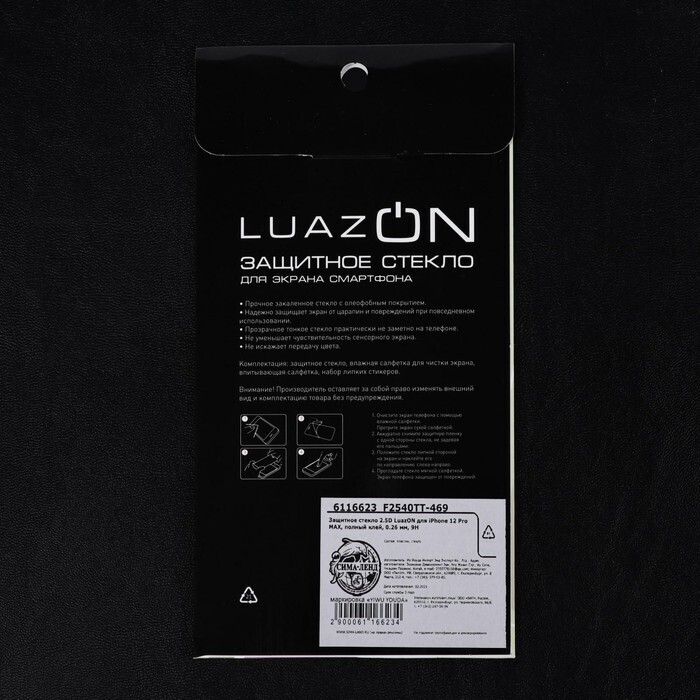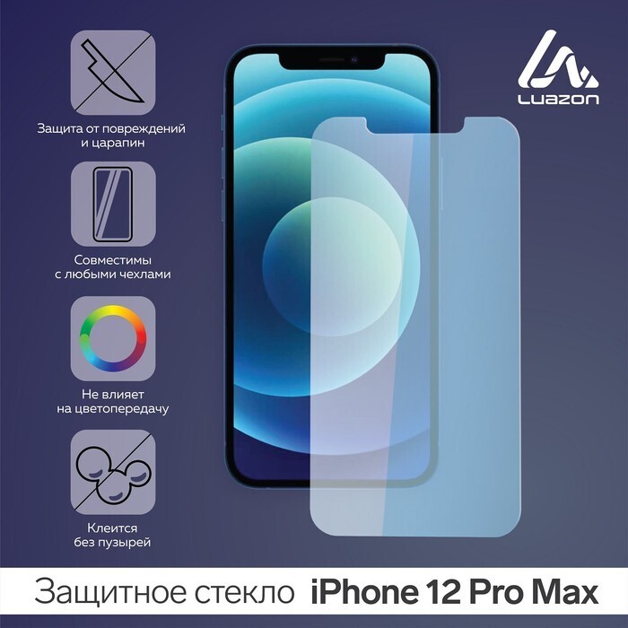 Защитное стекло 2.5D LuazON для iPhone 12 Pro MAX, полный клей, 0.26 мм, 9Н
