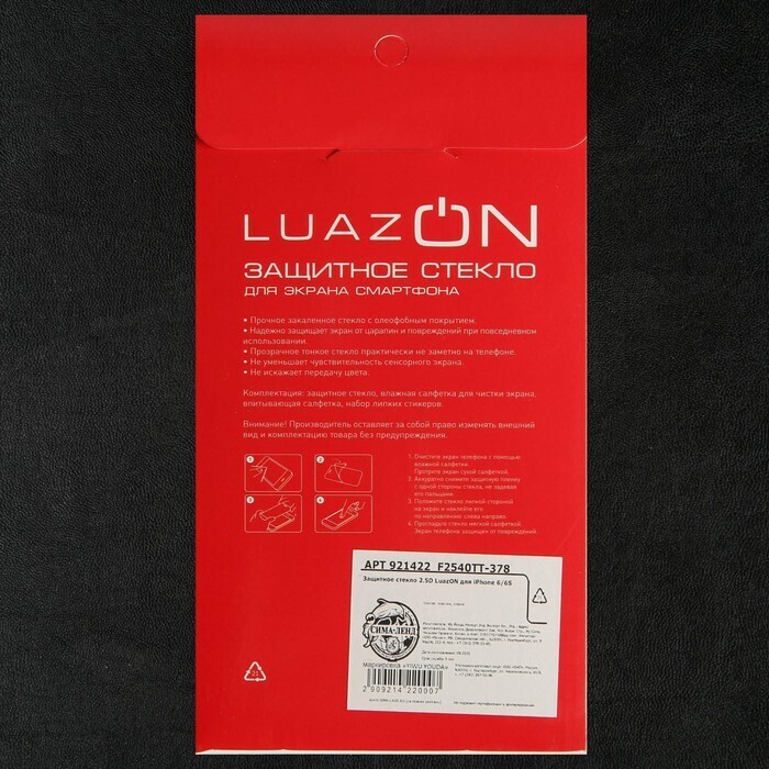 Защитное стекло 2.5D LuazON для iPhone 6/6S, полный клей