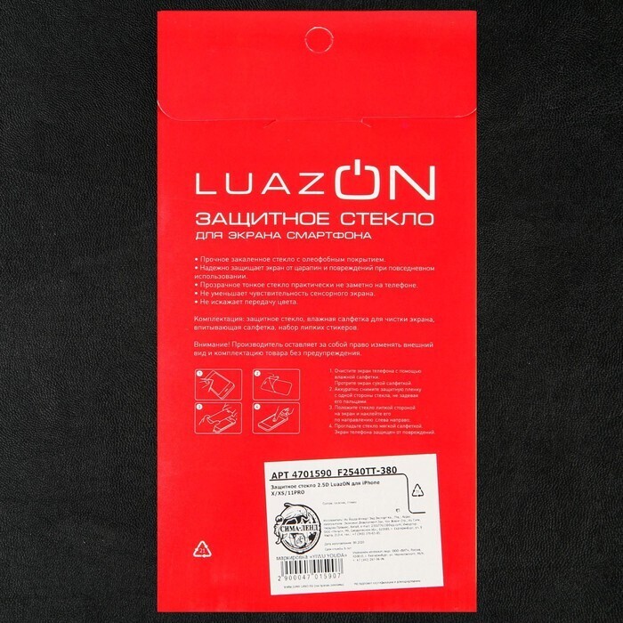Защитное стекло 2.5D LuazON для iPhone X/XS/11PRO