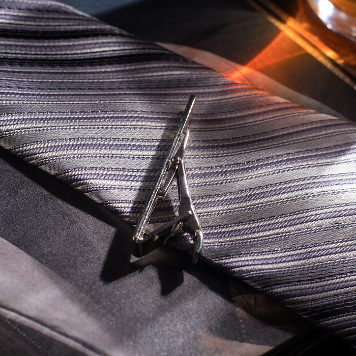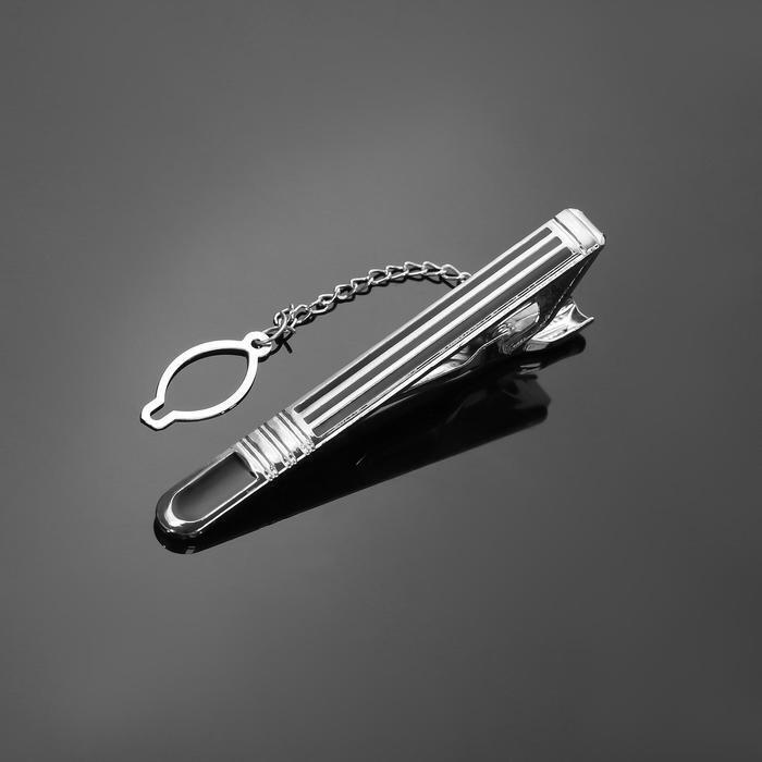 Зажим для галстука стальной "Классический" округлый с эмалью, цвет чёрный в серебре